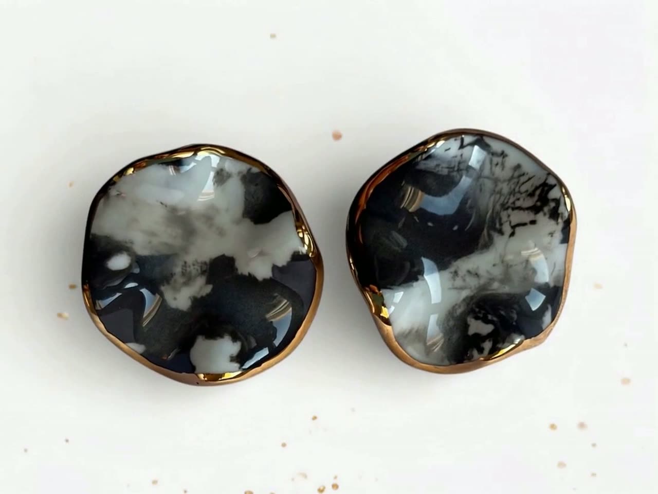 Svaki komad je ručno oblikovan od finog porcelana, potom ukrašen 24-karatnim tečnim zlatom. Skulptura za nošenje. Nikad ista dva puta.